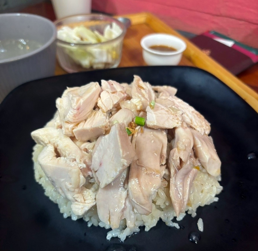 <까이식당>의 치킨 라이스는 수비드 방식으로 조리한 부드러운 닭고기와 닭 육수로 지은 고슬한 밥의 조화가 일품입니다. 각 부위별로 정성껏 손질된 닭고기는 뻑뻑함 없이 촉촉하며, 밥 위에 올려진 마늘 후레이크가 풍미를 더합니다. 마늘의 알싸함과 잘 간이 된 밥이 어우러져 첫 숟가락부터 마지막 한 입까지 질리지 않고 맛있게 먹을 수 있습니다.